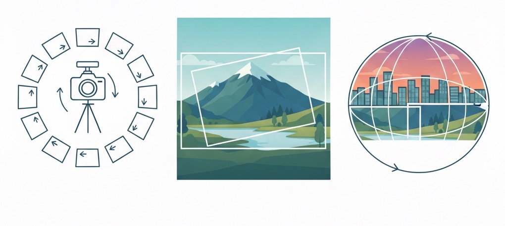 This technique uses limited movements or partial angles to capture wide perspectives. Short rotation works well for landscapes or single-row panoramas without the need for a complete spherical composition.